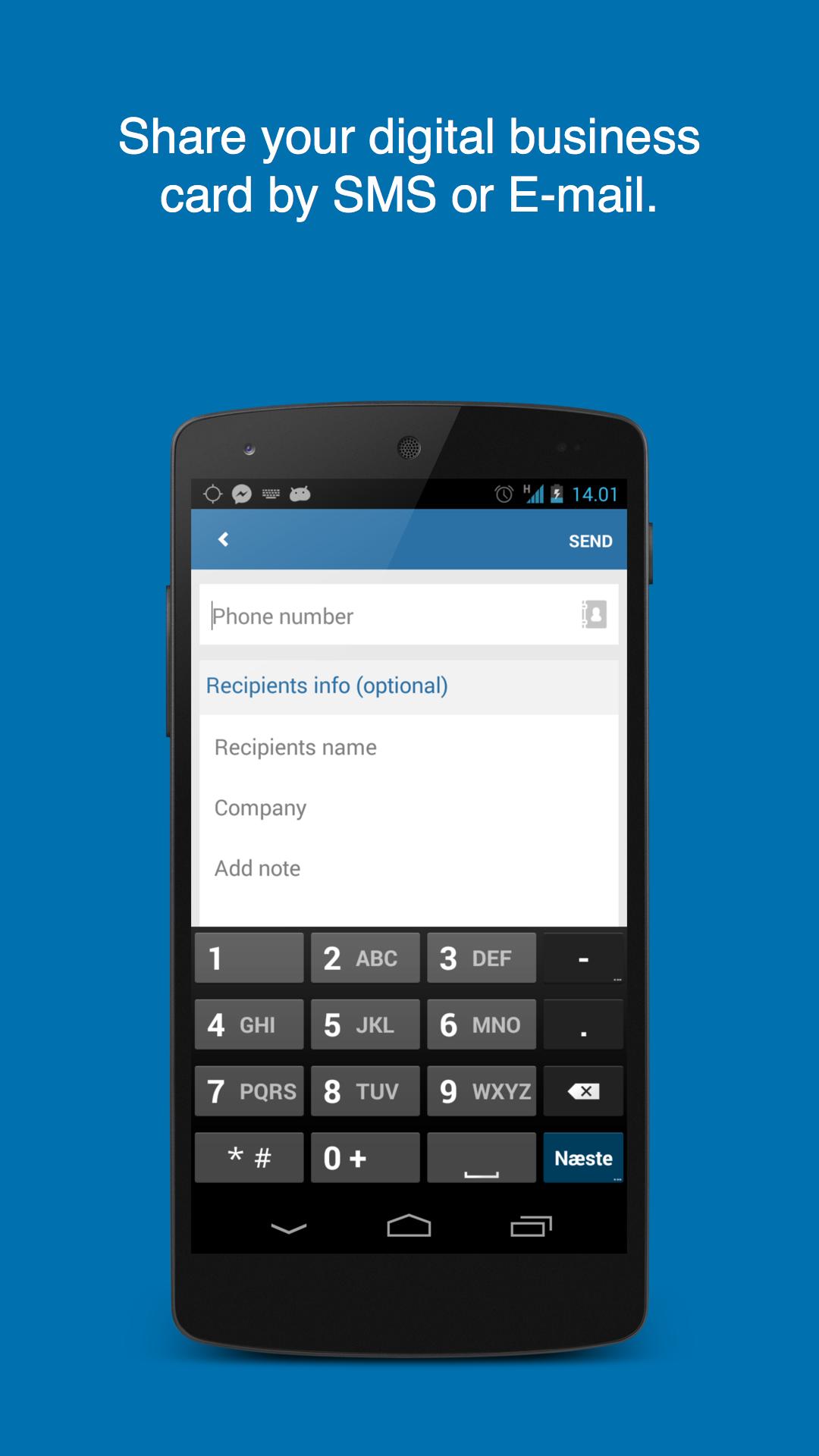 Ser recordado. El destinatario de su tarjeta de presentación guarda fácilmente su tarjeta de presentación digital en su lista de contactos. El destinatario no necesita la aplicación Flextown para recibir su tarjeta de presentación digital.