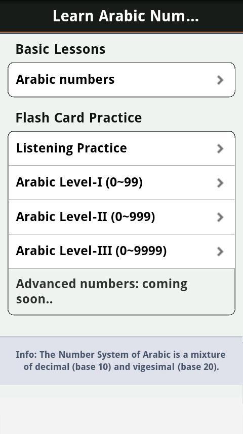 Guía de números árabes (dispará الأرقام العربية): es una gran herramienta, en la guía de referencia y estudio de Go para aprender números árabes. Proporciona pronunciación de audio árabe completa y un mini juego para ayudarlo a mejorar sus habilidades de número de árabe rápidamente. ¡Salga de compras y compra cosas con facilidad en su próxima visita a uno de los muchos países de habla árabe!