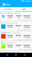 WiEye es un analizador WiFi 802.11 gratuito para Android. WiEye se puede utilizar para encuestas inalámbricas del sitio, escaneo WiFi y descubrimiento inalámbrico. Reporta el nombre, BSSID, Signic Strenge (DBM), canal y frecuencia de todos los puntos de acceso dentro del rango. También grafica estos datos para que pueda ver la congestión WiFi para cada canal disponible.