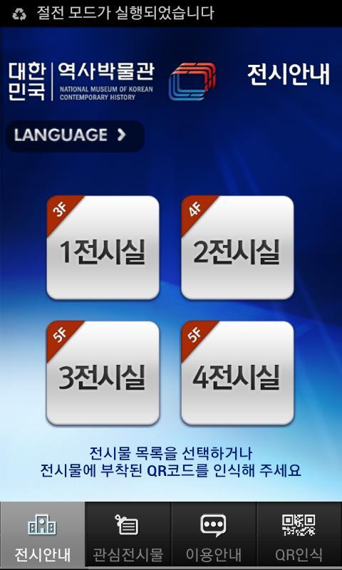 El Museo Nacional de Historia Contemporánea de Corea produjo una aplicación para teléfonos inteligentes, que los visitantes pueden utilizar fácilmente. La información móvil. La aplicación ayuda a los visitantes a obtener la información sobre exhibiciones y reliquias en el museo sin ningún dispositivo de información separado. Al usar un código QR puesto antes de cada exhibición, los visitantes pueden obtener más detalles sobre las exhibiciones relevantes.