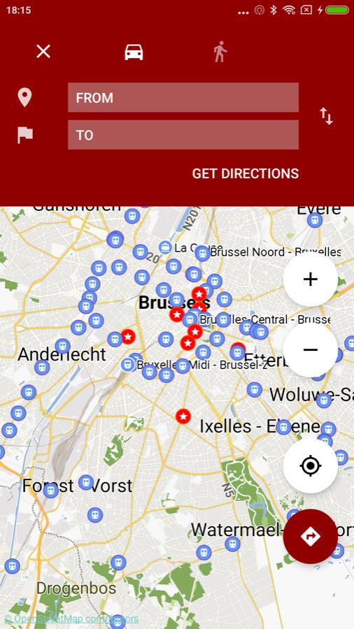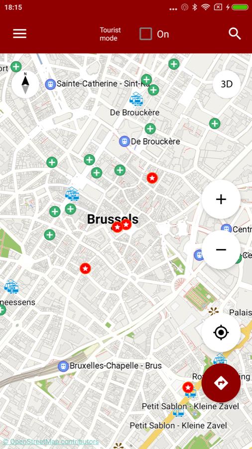 Mapa fuera de línea de Brussels (Bélgica): una aplicación de viaje gratuita. Lo hará: asigne la ruta, muestre atracciones turísticas con fotos y descripciones, encuentre la cafetería o el supermercado más cercano. Conexión a Internet no requerida.