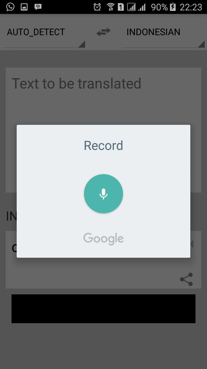Puede compartir sus resultados de traducción a las redes sociales como Facebook, Twitter, WhatsApp, Hangouts, Mensajes, Correo electrónico, Line, WeChat, Cocoa Talk y otras aplicaciones de redes sociales instaladas en su teléfono celular.