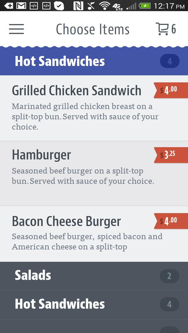 Con la aplicación Cyber Cafe WK , pedir su comida favorita para ir nunca ha sido más fácil. ¡Simplemente abra la aplicación, navegue por el menú, seleccione sus elementos y voila! Las características especiales incluyen: información del restaurante, acceso completo al menú, pedido anticipado, instrucciones especiales, propinas y guardar la información de su cuenta, así como el pago de Android para un pago fácil. Descargar. Orden. Comer. Repetir.