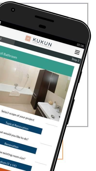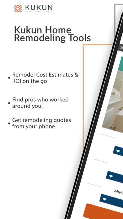 Con la aplicación de remodelación del hogar de Kukun , puede estimar el costo de remodelar proyectos en el acto en tiempo real, calcular el retorno de la inversión (ROI) de esos proyectos, encontrar un contratista en su vecindario y ver un resumen de su presencia en línea en un lugar, solicitar un cotización, encontrar un préstamo que mejor se adapte a sus necesidades y conectarse con el lénero correcto.