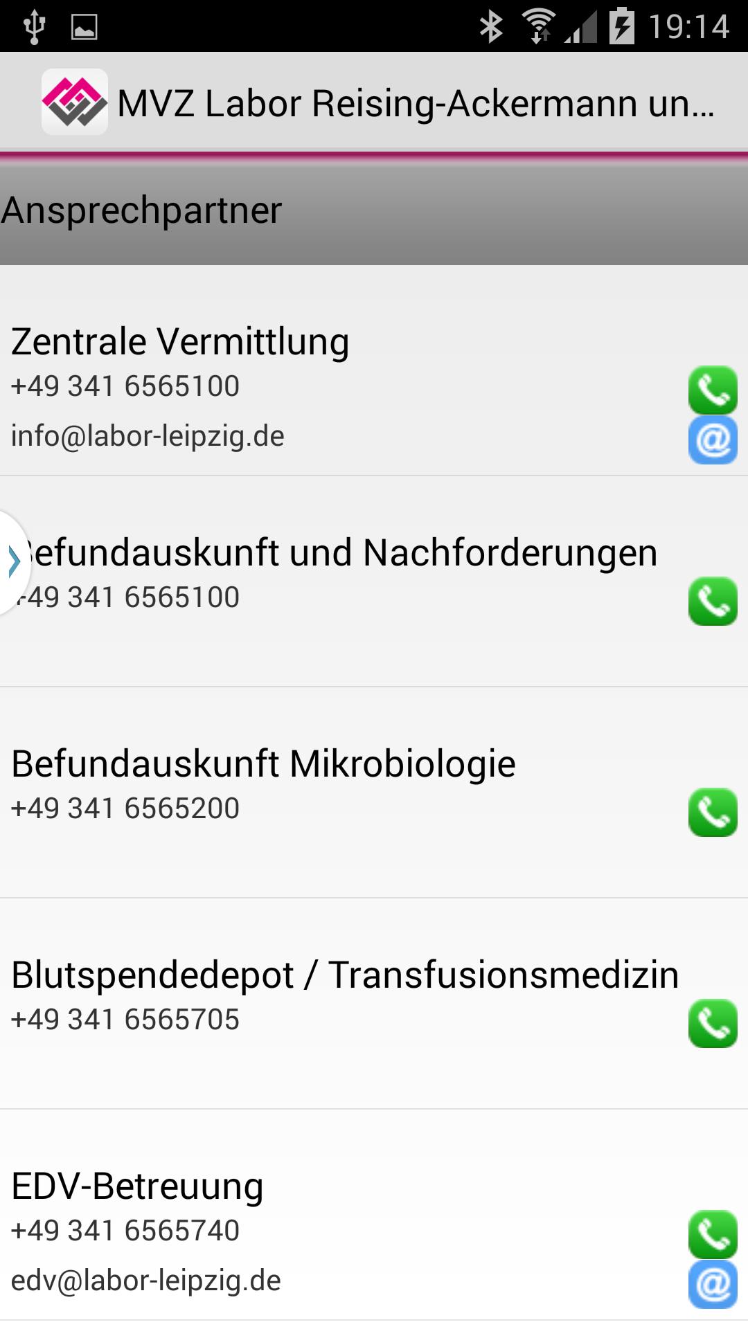 Puede tener la lista de contactos en línea conectada directamente desde la aplicación al socio deseado en el laboratorio o enviarles un correo electrónico.