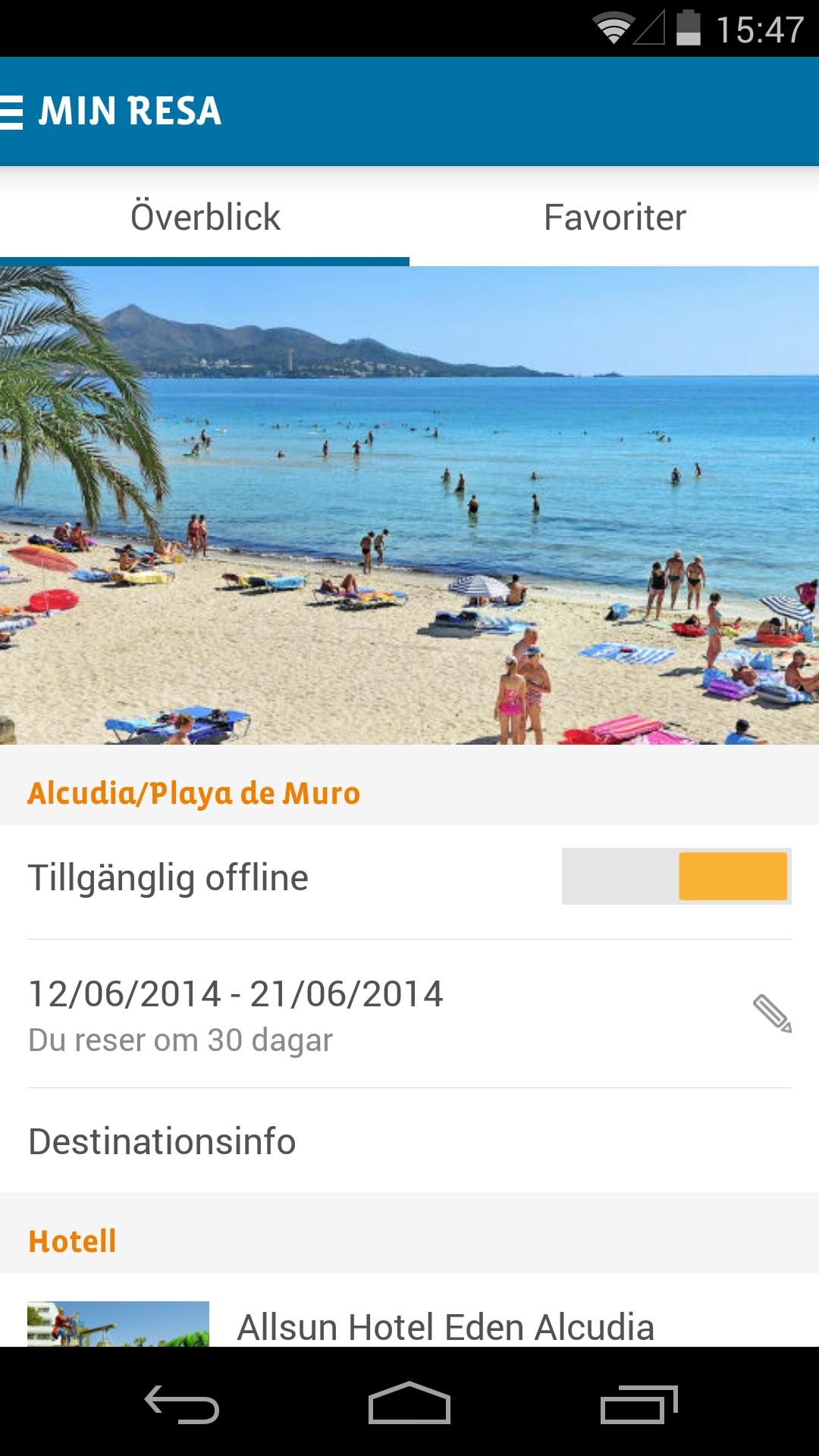 La aplicación también se puede usar en modo fuera de línea cuando está en el destino. De esta manera, no tiene que preocuparse por el costoso tráfico de datos en el extranjero. Un consejo es que en el destino se conecta en WiFi, por lo que obtiene los últimos consejos y ofertas en la aplicación.