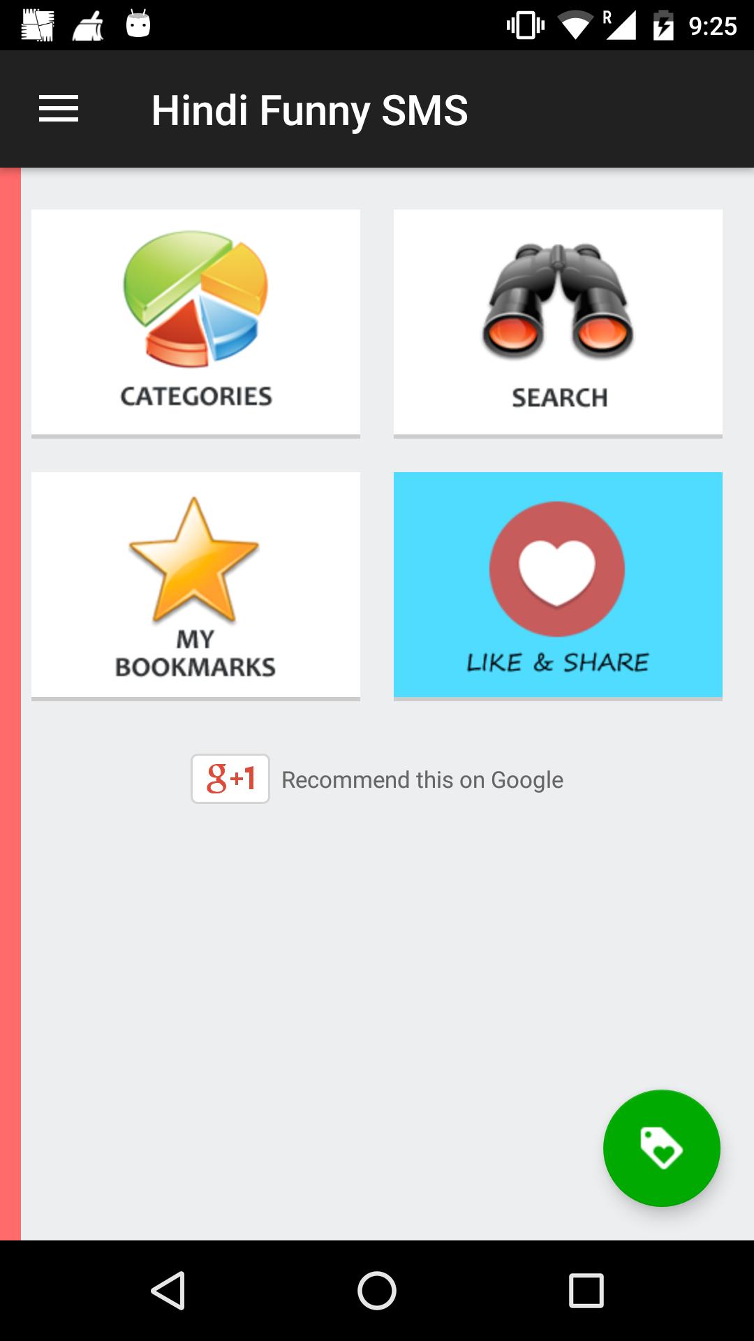 Tiene una amplia gama de SMS bien categorizados en Funny, Santa Banta, Rajnikant, College, Friendship SMS y muchos más para una fácil navegación. Puede navegar por SMS por categorías, última adición o calificaciones.