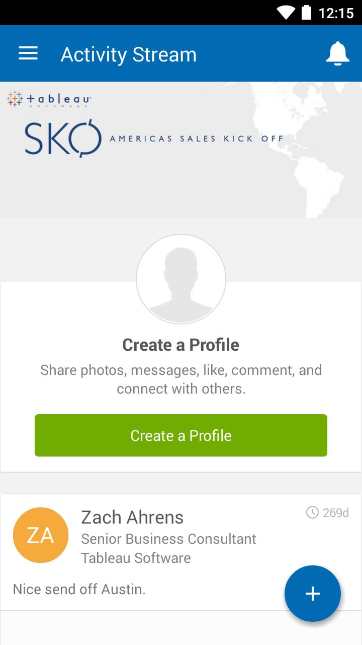 El inicio de las ventas de América de Tableau Software, Austin Texas. Descargue la aplicación para obtener toda la información que necesitará durante la semana.