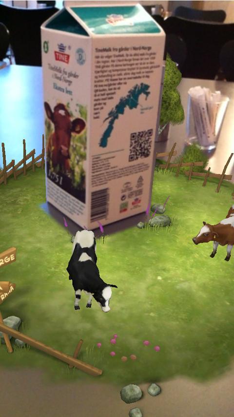 TineMelk AR le permite experimentar el mundo secreto de las vacas en su mesa alrededor del cartón de leche utilizando la realidad de realidad aumentada (AR) y la parte posterior del cartón de leche como marcador AR.