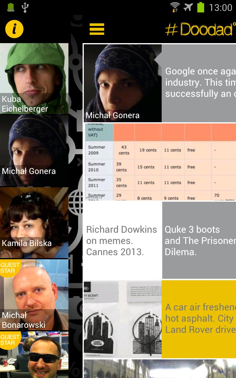 Doodad es una parte diaria de información sobre marketing digital, nuevos medios, tecnología y cultura pop seleccionada por el personal de DDB Warsaw y expertos independientes.