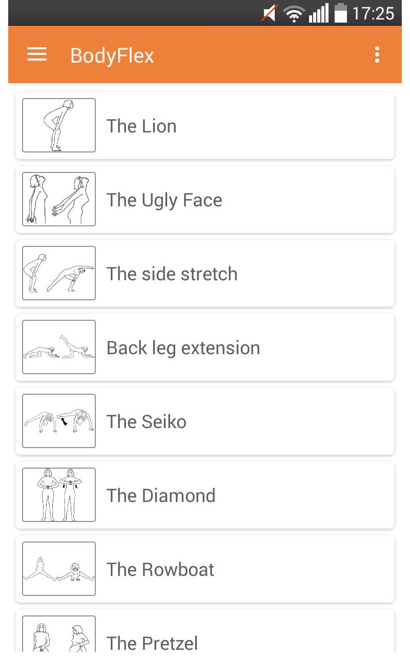 Nuestra aplicación contiene todos los ejercicios de gimnasia BodyFlex . Enumera los errores comunes para principiantes y entrenador de consejos.