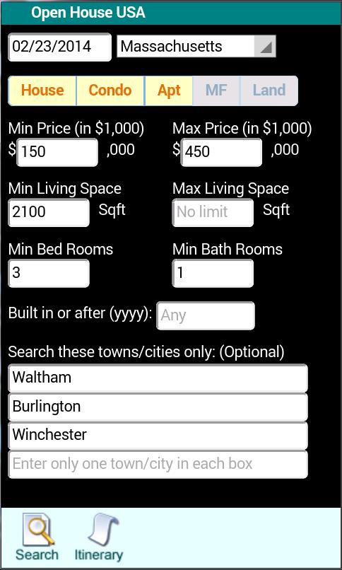 Real Estate Open House USA le permite buscar información sobre la casa abierta de bienes raíces de MLS en todo el EE. UU. (50 estados y DC). Busque propiedades (casas unifamiliares, apartamentos, condominios, casas adosadas, casas multifamiliares, terrenos, etc.) a la venta con jornadas de puertas abiertas en cualquier fecha en las próximas dos semanas. Especifique una o una combinación de tipos de propiedades, incluyendo una sola casa, condominio (condominio), apartamento, multifamiliar o tierra. Elija cualquier estado y luego, opcionalmente, seleccione uno o más ciudades/ciudades para buscar en solo. Puede reducir aún más la selección especificando precios mínimos y máximos, espacios de vida mínimo y máximo, números de dormitorios y baños y edad máxima (año más temprano construido) de la casa.