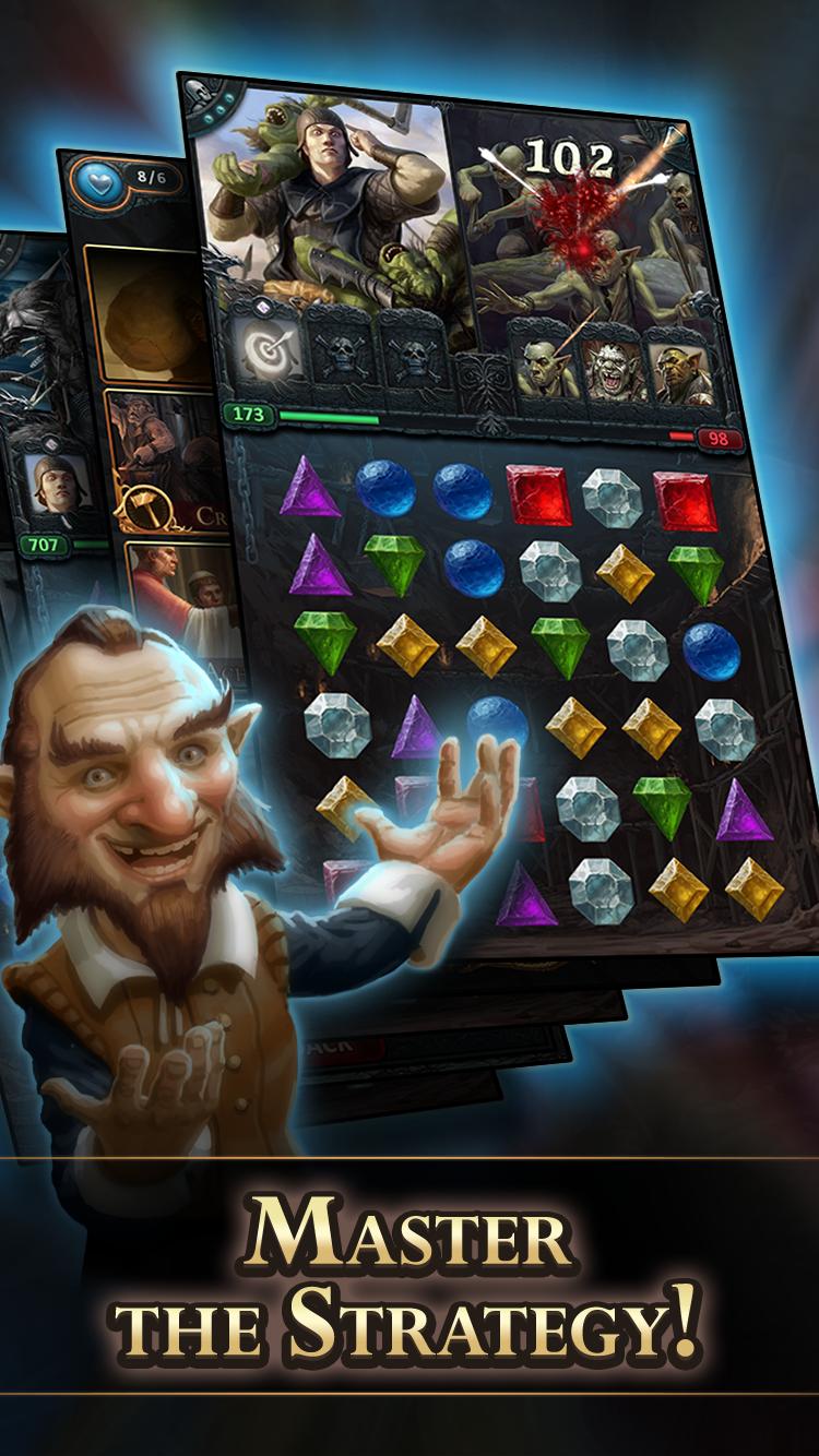 Un juego de batalla de cartas de fantasía, donde el combate se decide a través de un rompecabezas por turnos.