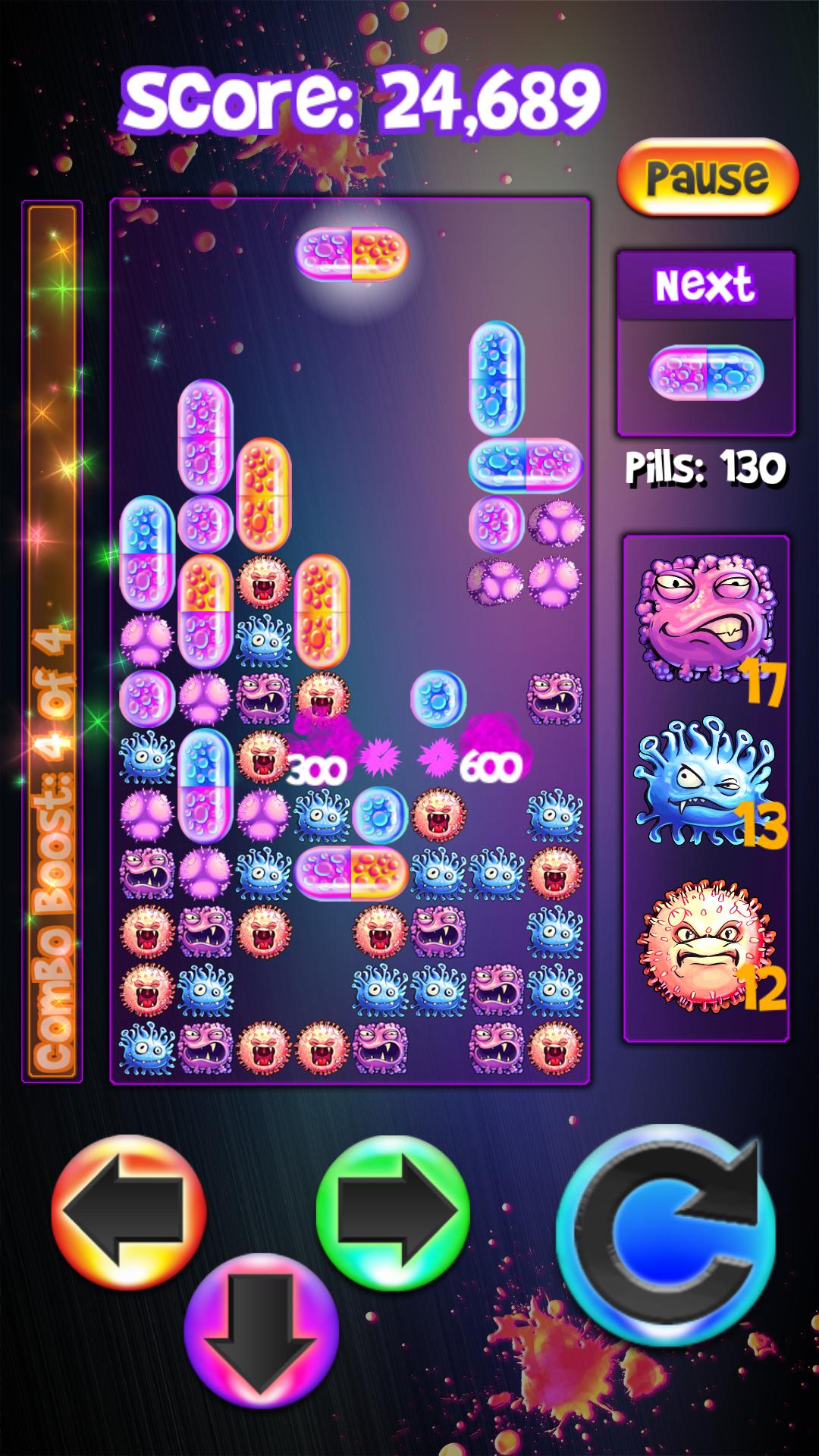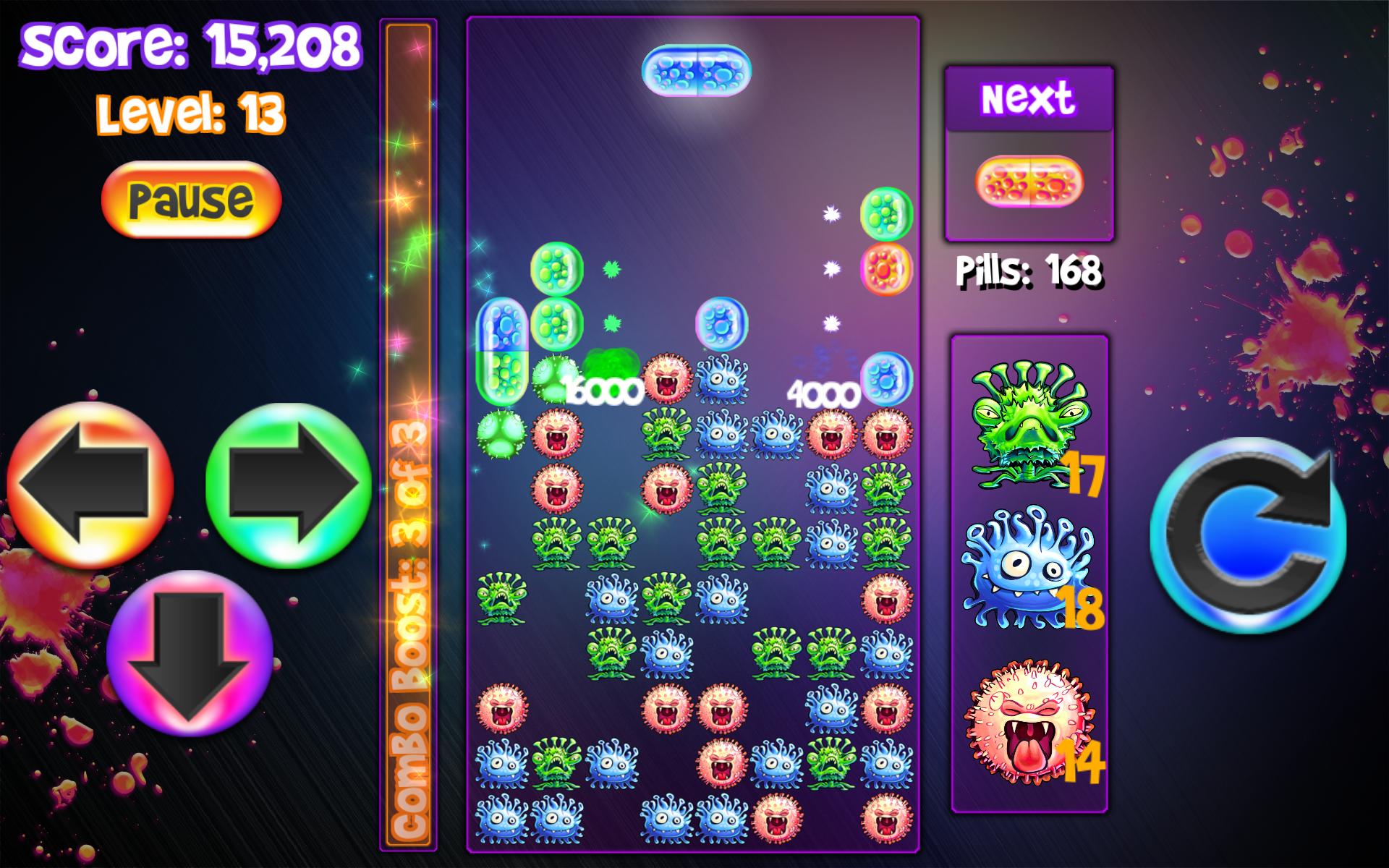 Un giro moderno a los juegos de rompecabezas clásicos de bloqueo. El combo único del medidor de impulso y las habilidades especiales de virus hacen que este juego de píldoras sea fácil de aprender pero desafiante para dominar.