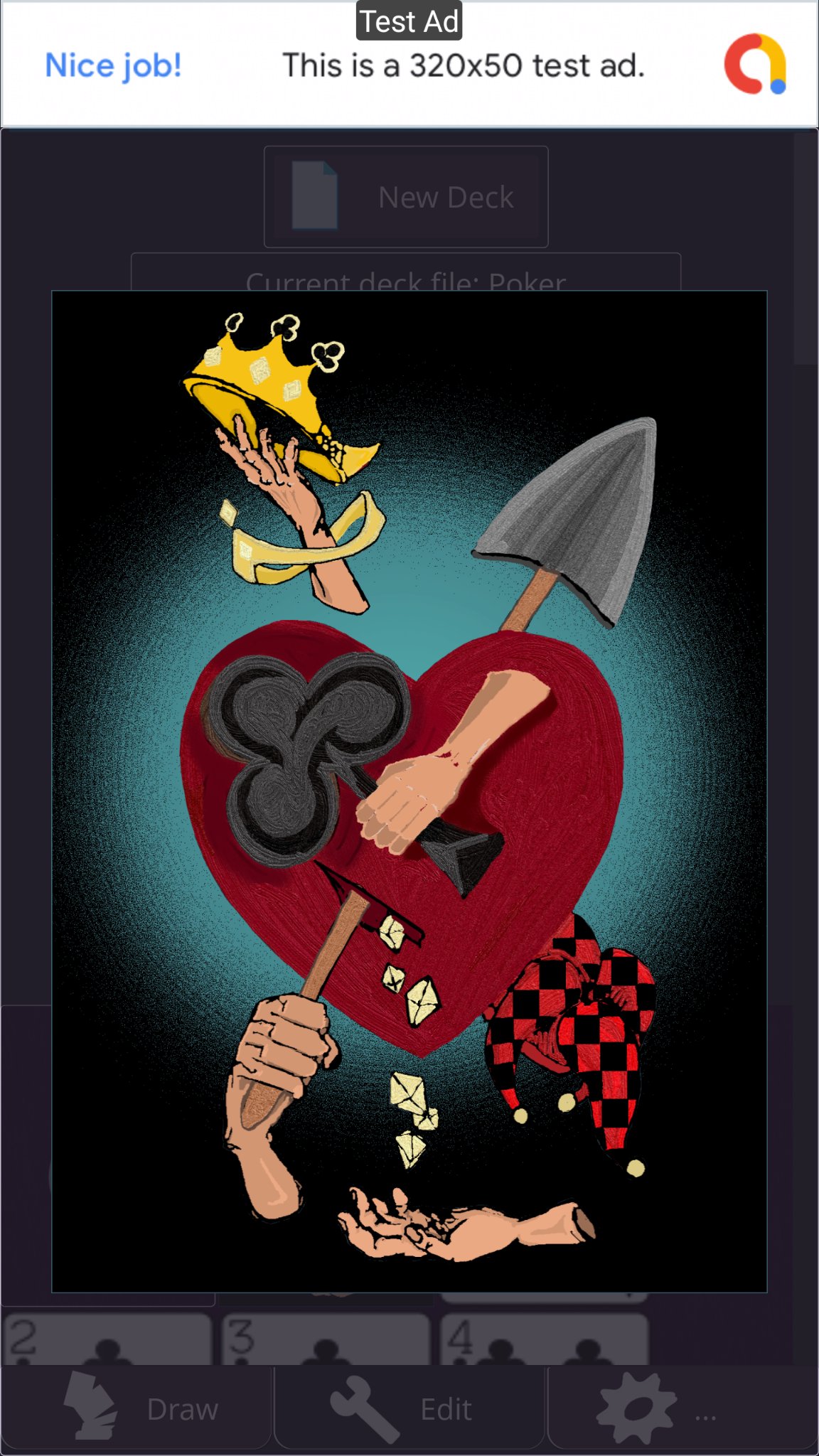 Incluye una baraja preestablecida de naipes estándar (por ejemplo, póquer) y botones sencillos para crear su propia baraja de cartas.