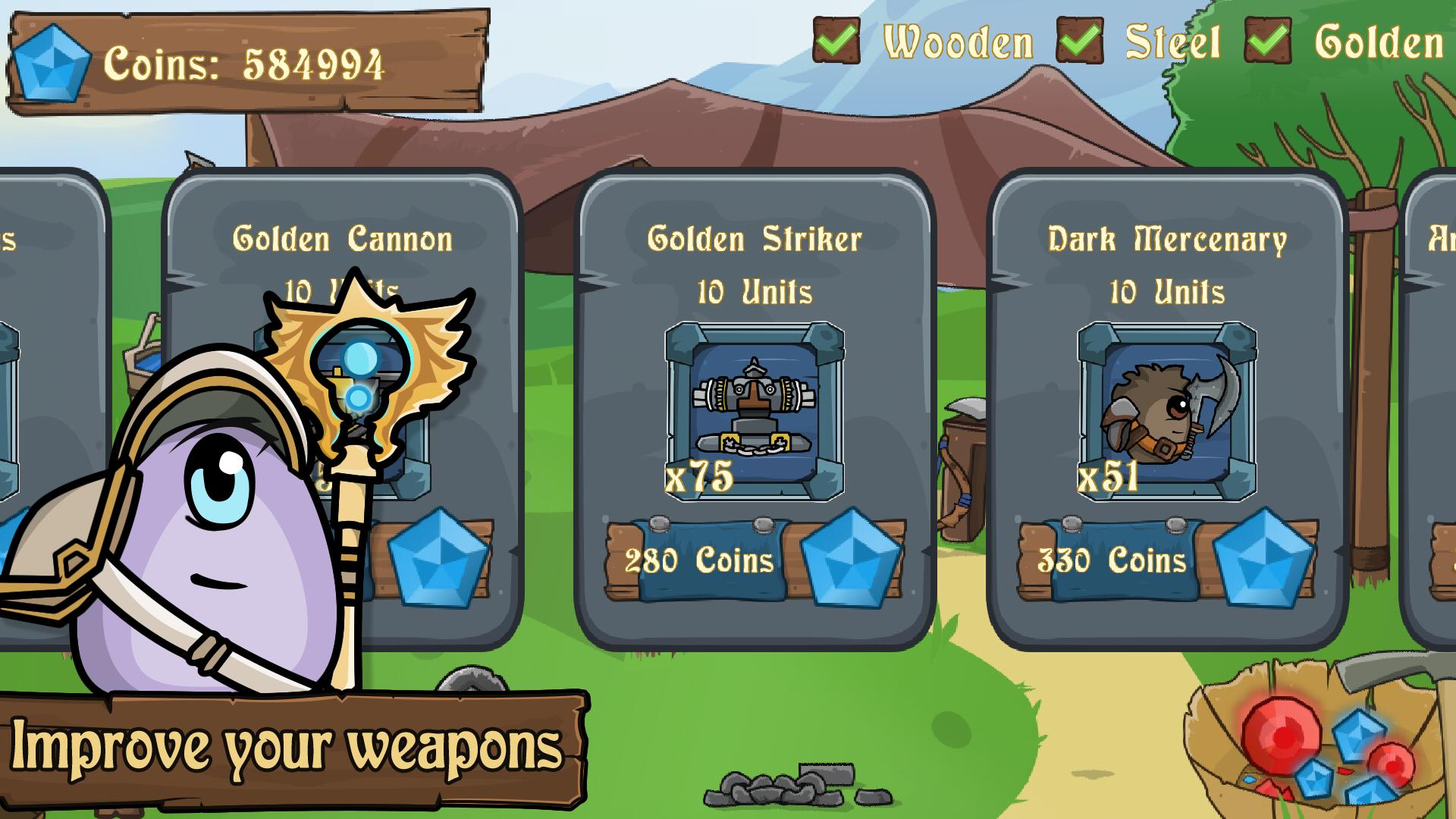 A medida que se desarrolle el escenario, comenzará a ganar gemas, estas son pequeñas piedras muy valiosas que tendrá que cambiar por las armas más tarde para mantener su equipo cargado.