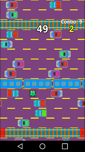 La valiente rana está cruzando la carretera, el río y muchos autos.