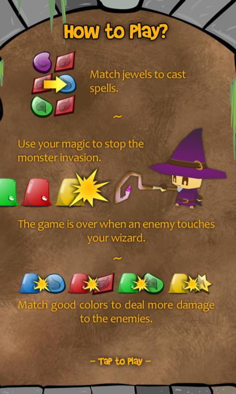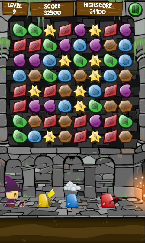 Coincida con 3 o más joyas para invocar hechizos poderosos con efectos nítidos.