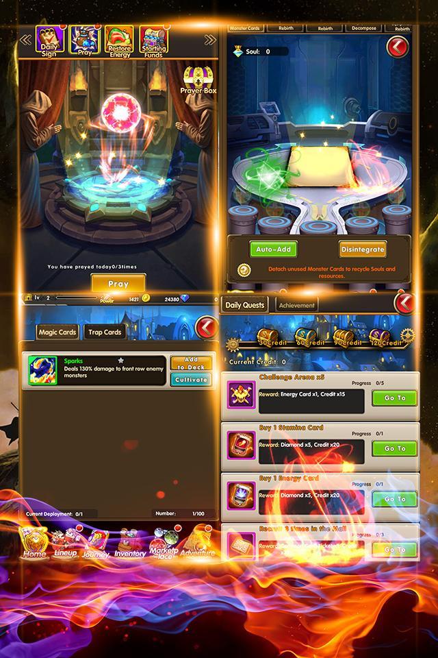 Tower of Duel, Game Academy, Nether Gate y King's Memory y otros sistemas distintivos te ayudan a recopilar recursos y disfrutar de la diversión del juego. ¡Cada tarjeta puede activar diferentes destinos y efectos pasivos después de actualizar, integración, ajuste, ceremonia, equipo, artefactos y otras fuerzas armadas! Cultivar grupos de tarjetas exclusivos. ¡No hay una tarjeta más fuerte, solo el duelista más fuerte!