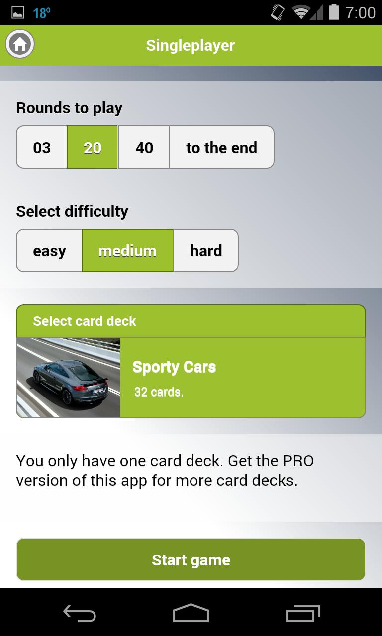- Juega Xtrumps Quartett contra la computadora en 3 niveles diferentes de dificultad. Juega para un número fijo de rondas o hasta que un jugador posea todas las cartas.