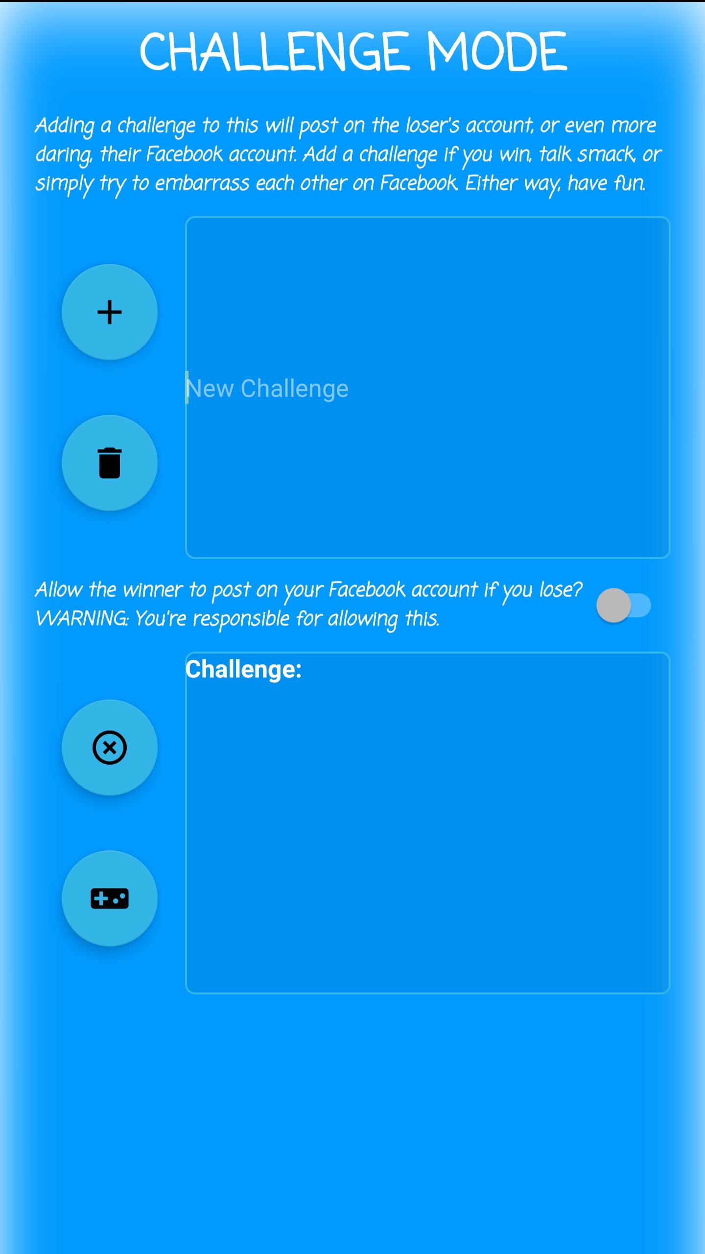 Tiene un modo de desafío, donde tienes la opción de publicar en el teléfono perdedor. ¡Esto incluye publicar en su cuenta de Facebook!