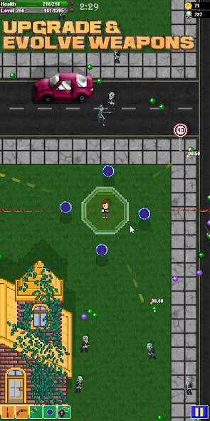 Zombies in My Neighborhood es un juego de lucha de Roguelite Arena de Acción o lo que se conoce como Bullet Heaven o 2D Pixel Auto -shooter, con un giro único de características inactivas y ricas y actualizaciones incrementales. Zombies in My Neighborhood un juego de la arena del cielo de Bullet Survivor con una nueva versión del género inspirado en los sobrevivientes de vampiros y los clásicos zombies del juego Super Nintendo se comieron a mis vecinos. Es una defensa de torre móvil incremental como el juego donde controlas y actualizas a diferentes personajes y tienes que sobrevivir el mayor tiempo posible. ¡Hay agricultura XP, recolección de cartas, evoluciones de armas y muchas reparaciones para sobrevivir en cada etapa! Defiende su vecindario antes de que se destruya, gane monedas y gemas para desbloquear actualizaciones permanentes, ¡luego pruébelo! ¡Construya el personaje y el árbol de habilidades perfectos para la defensa contra criaturas y enemigos no muertos! Lucha contra jefes únicos y difíciles.