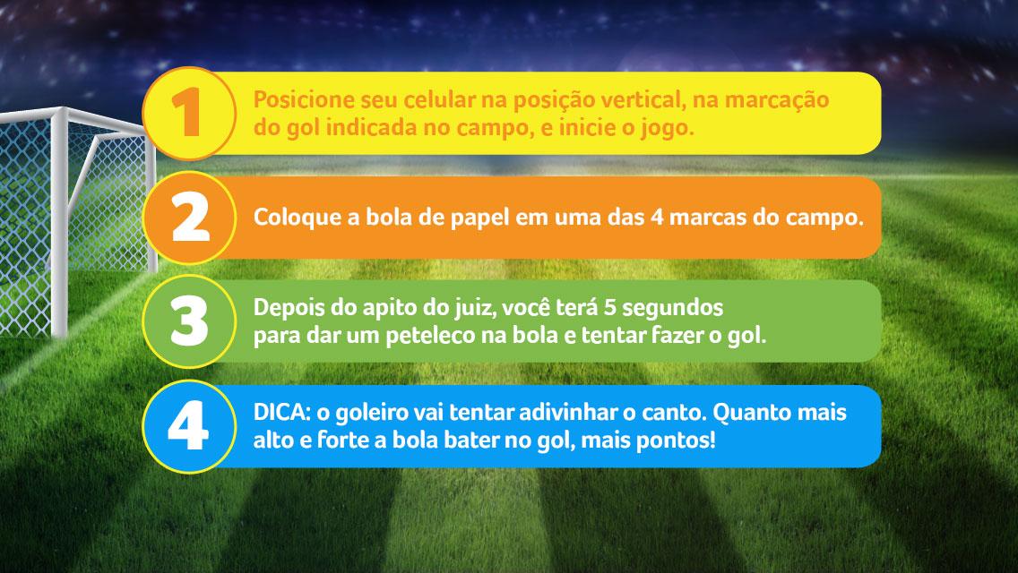 El objetivo es "patear" la pelota con dedos (conocido como "Peteleco") y alcanzar la meta. ¡Cuanto más fuerte y superior sea la patada, más puntos ganará!