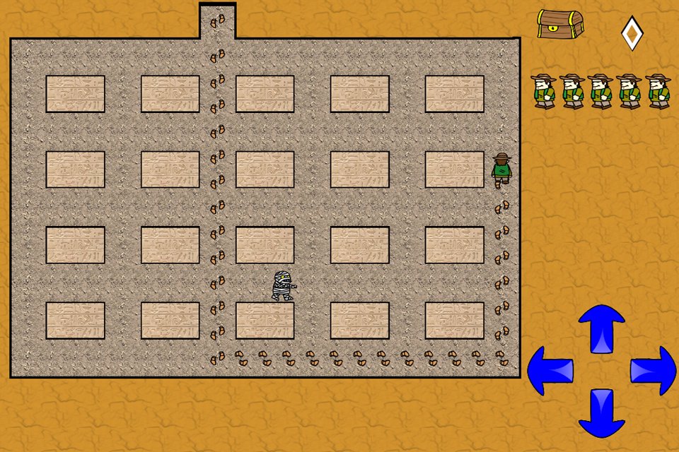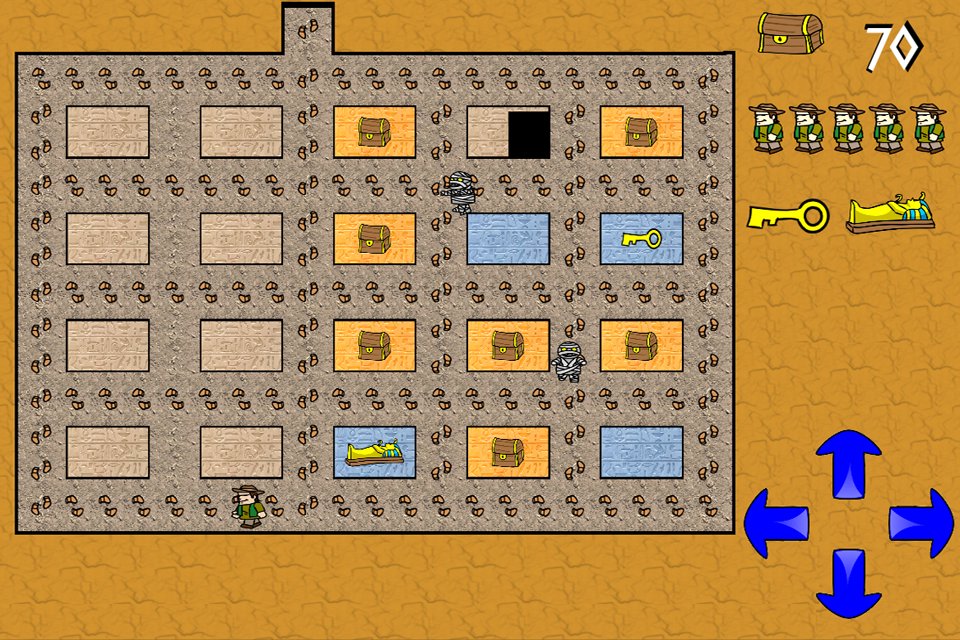 Cada nivel contiene 10 tesoros, 6 celdas vacías y el resto una momia, un guardián, una llave y un certificado.