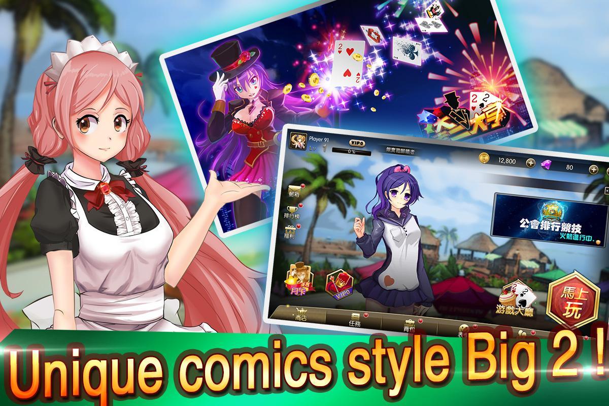 《 Big 2 Tycoon 》 es uno de los juegos de cartas más interesantes de Asia, sigue las reglas de Big 2 en Taiwán. La única forma de ganar el juego es ser la primera en deshacerse de todas sus cartas.