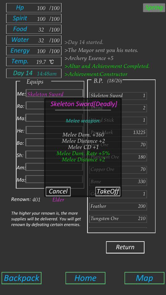 Construya su taller y altar, capture poderosos criaturas como dragones, protegen su tesoro de los ladrones, ámate con armas poderosas, explora la mazmorra misteriosa, ingresa al vórtice espacial y finalmente regresa a donde perteneces.