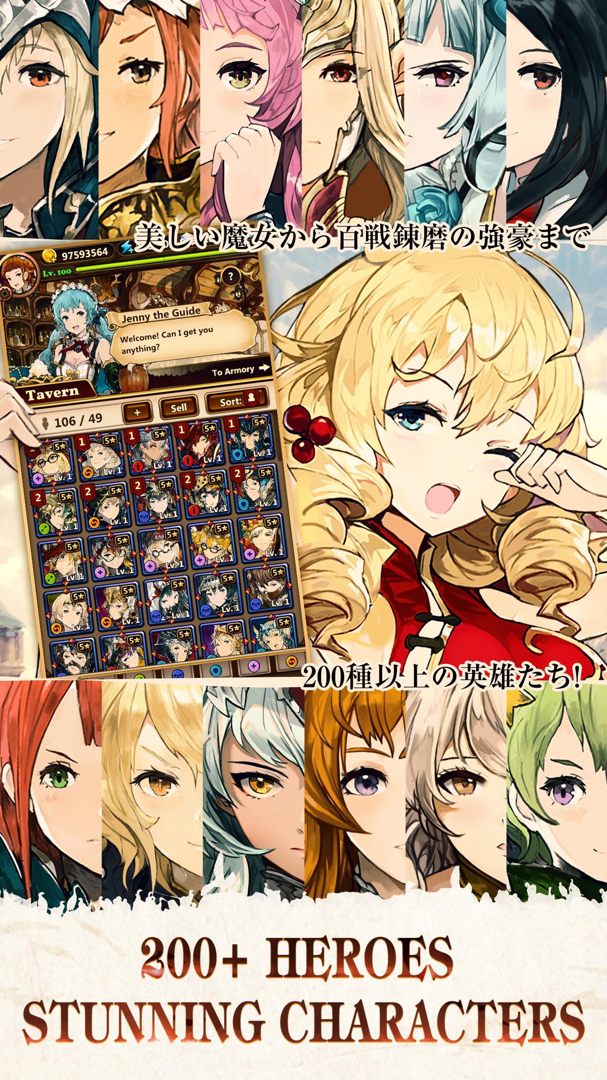 Power up your heroes with different rarities of equipment obtained from dungeon loot or crafted using materials. There are over 500 different items to collect!