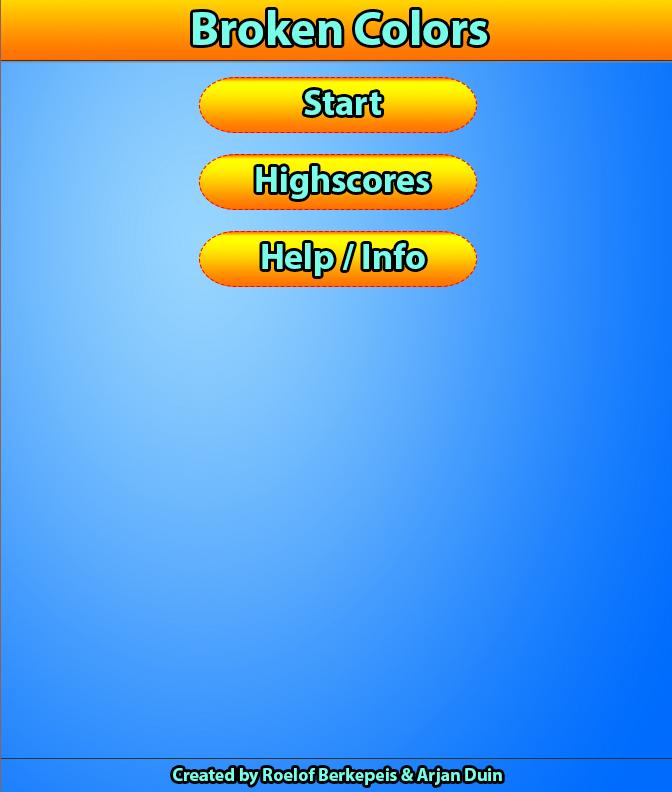 Broken Colors es un juego de mesa donde el jugador tiene que poner 25 colores en el plato. Cada turno, el jugador debe colocar un color en el plato. Cada color debe estar conectado entre sí hasta que la placa esté llena. Rojo sobre rojo y azul sobre azul. Si un color no está conectado (roto), ¡el jugador recibirá puntos de penalización!