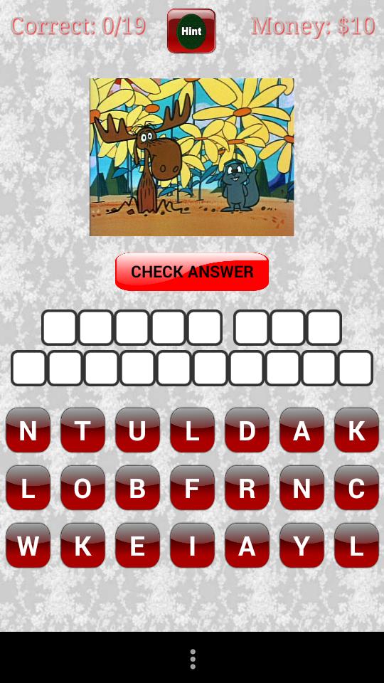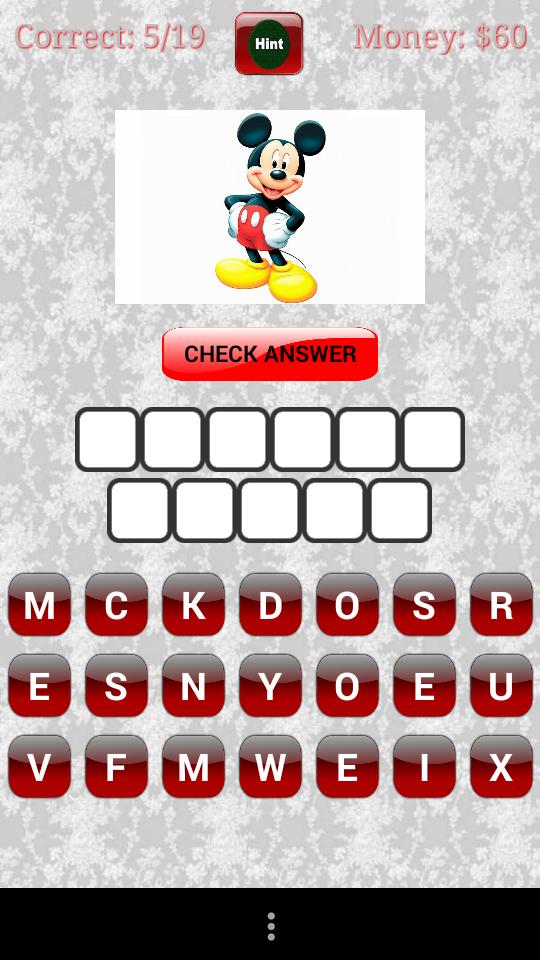 Escriba el nombre del personaje de dibujos animados que aparece. Gana moneda por cada respuesta correcta. Use el botón Sugerencia para obtener pistas para las preguntas que no sabe. Muy adictivo para los niños 5+.