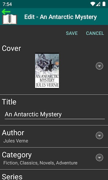 6) Gérer les informations sur les livres électroniques avec la capacité de mise à jour pour pratiquement toutes les propriétés de métadonnées disponibles pour vos livres électroniques, y compris les catégories (synonymes d'étiquettes, étagères de livres, sujets), index de séries et de séries, notes (jusqu'à 5 étoiles), titre, auteurs, description, et bien d'autres ...