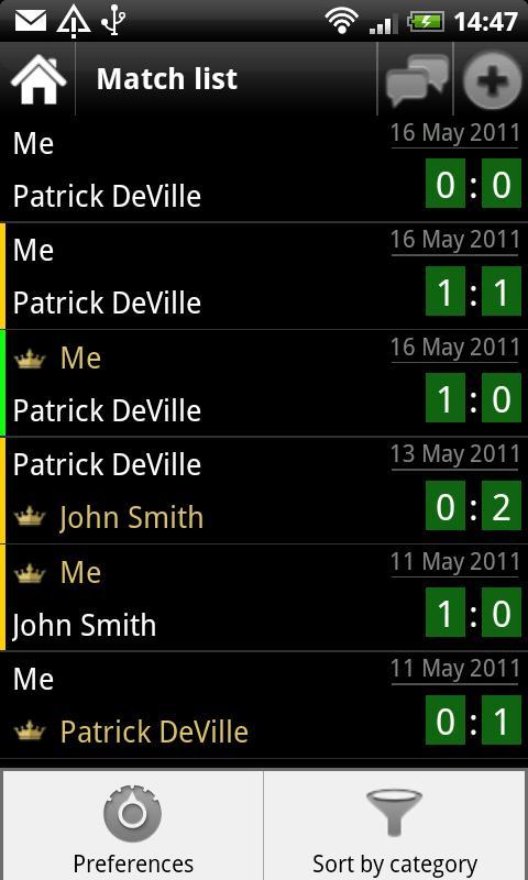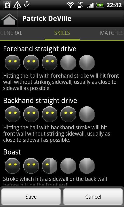 Enregistrez vos sets et matchs, qui a gagné et qui a perdu. Révisiez l'histoire de vos adversaires et de vos matchs, et même ajoutez aux données de vos adversaires concernant leurs bons et leurs mauvais côtés.