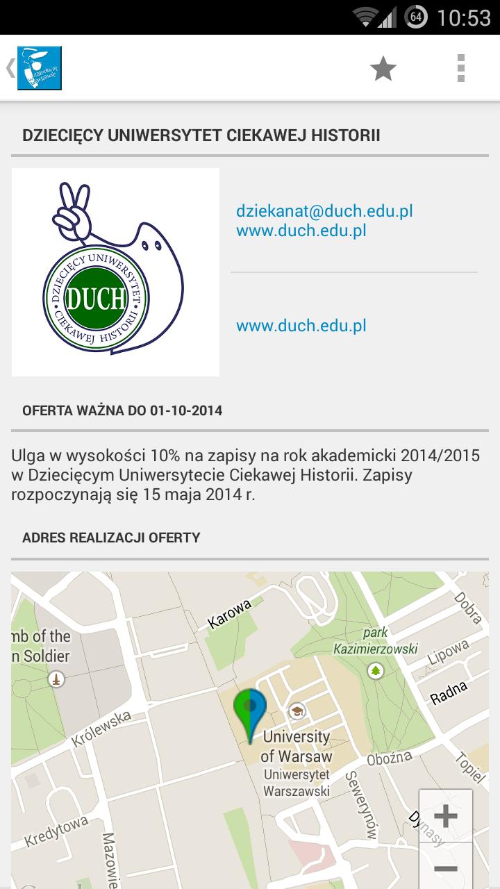 Pour pouvoir profiter des remises, des reliefs et des préférences des remises présentées dans l'application mobile de la famille Wawa, tout ce que vous avez à faire est de montrer une jeune carte varsovienne ou une carte de Varsovie à l'endroit où il est honoré.