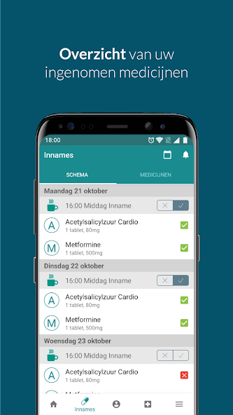 Il est difficile pour de nombreuses personnes de s'en tenir à différents horaires d'admission. Fixez des rappels dans l'application à différents moments, comme se lever, dîner et avant d'aller se coucher. À ces moments, une alarme se déclenche sur votre téléphone ou votre tablette et vous verrez les médicaments que vous devez prendre.