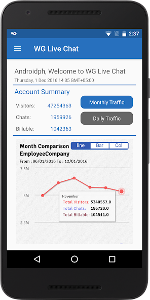 WG Live Chat Software est un moyen instantané et sans tracas pour les entreprises de se connecter avec les acheteurs en ligne sans tracts ni temps d'attente longs. WG Live Chat Software s'accumule légitimement avec le service client réel avec lequel les clients peuvent être accueillis et assistés comme dans un magasin de brique et de mortier. Les réponses par e-mail ou appel téléphonique sont principalement en laggard et impliquent de longues attentes, mais avec l'application WG Live Chat Software , vous pouvez être disponible 24/7 pour aider les clients dans leurs requêtes de votre téléphone portable Android. Le fait est que les clients en ligne se heurtent à une impasse tout le temps tout en parcourant le Web pour un achat décent et vous ne pouvez pas vous asseoir devant votre ordinateur portable ou votre bureau pour aider les clients en ligne. Le nombre d'acheteurs peut facilement chuter s'il y a un manque d'assistance sur le site Web de l'entreprise. Cependant, l'application WG Live Chat Software permet aux clients une accès rapide à vous pour des solutions instantanées avec seulement quelques touches de votre téléphone mobile Android.