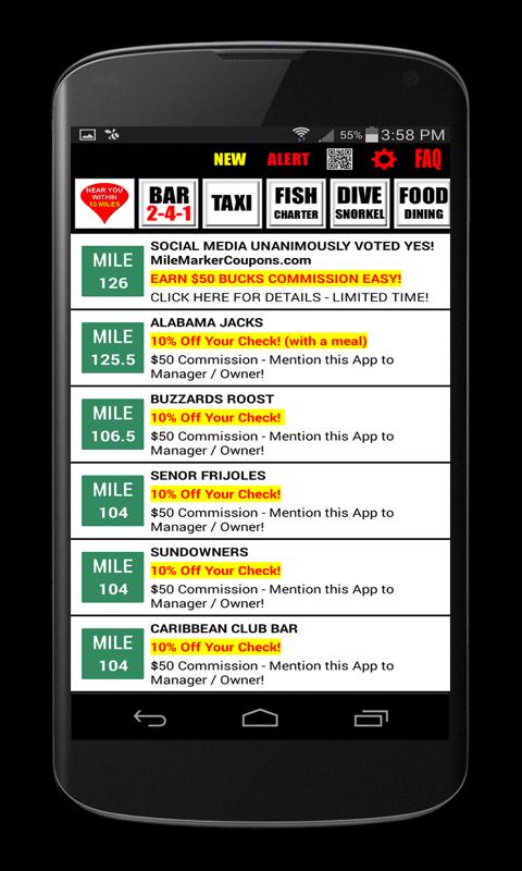 Bienvenue dans les coupons de marqueur mile Florida Keys App. Nous avons créé la seule vraie application de coupon de Florida Keys ...... pas une application. Cela lit juste un site Web, qui ne fait rien et affiche de manière incorrecte mais une application de coupon de Florida Keys. Cela vous permet de racheter vos coupons de Florida Keys dans les entreprises de clés locales. Nous ne faisons que la promotion des entreprises de clés appartenant à localement. Profitez de aucune publicité avec notre application gratuite de coupon de Florida Keys.