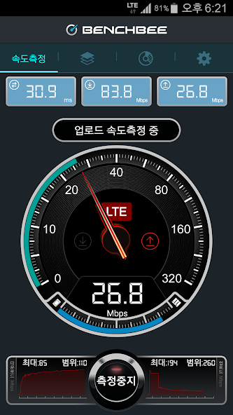 BenchBee SpeedTest est conçu pour tester la vitesse du réseau mobile. Vous pouvez mesurer facilement les performances du réseau.