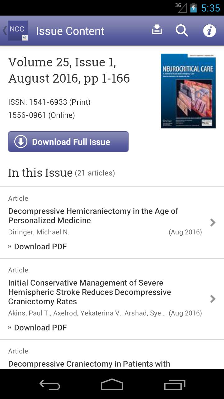 Exploitez les développements les plus récents dans tous les aspects des soins neurologiques aigus avec l'application Neurocritical Care . Neurocritical Care sont une revue médicale évaluée par des pairs publiée par Springer Science + Business Media qui fournit un aperçu complet des développements actuels en neurologie de soins intensifs, neurochirurgie et neuroanesthésie et comprend des informations sur les nouvelles avenues thérapeutiques et les innovations technologiques. La revue publie continuellement des articles de revue, des articles originaux et des articles éducatifs écrits par des membres de la communauté médicale.