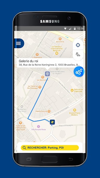 • Trouvez un «point d'intérêt» et planifiez un itinéraire vers le parking d' Interparking le plus proche
