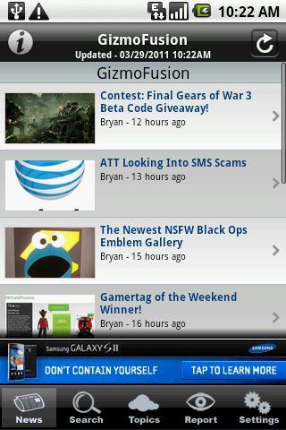 The GizmoFusion app covers gaming and mobile news, product reviews, and rumors.
