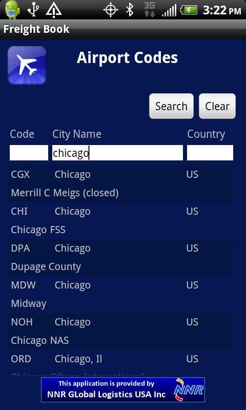 Le livre de fret de NNR Global Logistics USA Inc, est un ensemble d'outils et de guides de référence à multiples facettes pour l'industrie du transport. Le livre de fret est une solution mobile utile pour les expéditeurs, les destinataires et les fournisseurs de logistique. Calculez le poids et le volume dimensionnels, les codes de recherche sur l'aéroport et le port maritime, recherchez des numéros HTS à partir de la commodité de votre propre téléphone portable. Le livre de fret facilite la recherche d'informations liées au fret et effectuer des calculs rapidement de n'importe où.