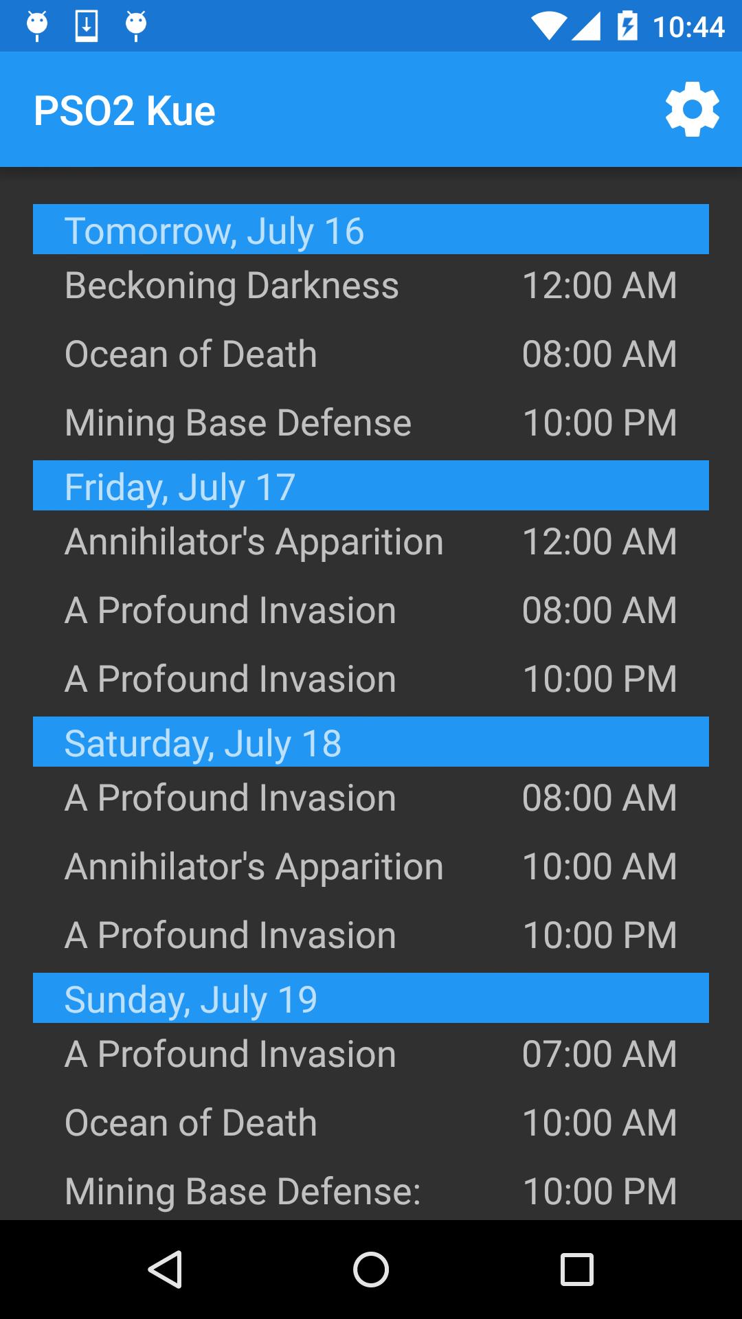 Une application Android de suivi de quêtes d'urgence pour le PC MMO Phantasy Star Online.