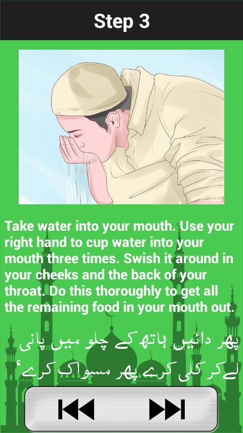 Si vous souhaitez Learn Namaz avec une illustration étape par étape, téléchargez cette application islamique et il contient également la méthode des ablutions étape par étape.