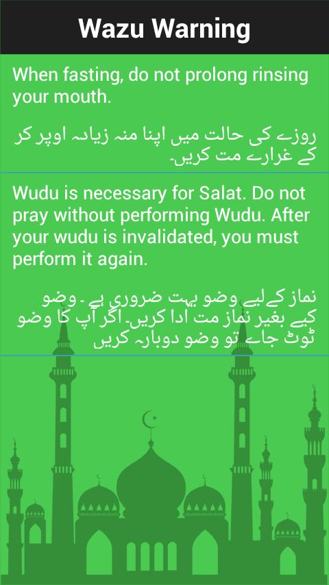 Rendez vos prières et vos ablutions correctes selon la Sunna. Cette application passe par tout le processus de dire la prière. Instructions étape par étape sur la façon de dire une partie de la prière sur chaque prière individuellement comme 2 Rakat Sunnat, 4 Rakat Sunnat, 2 Rakat Farz 4 Rakat Farz et 2 Rakat Nawafil. Nous avons également ajouté une méthode pour effectuer des ablutions visuellement avec des traductions d'anglais et d'ourdou d'instructions.