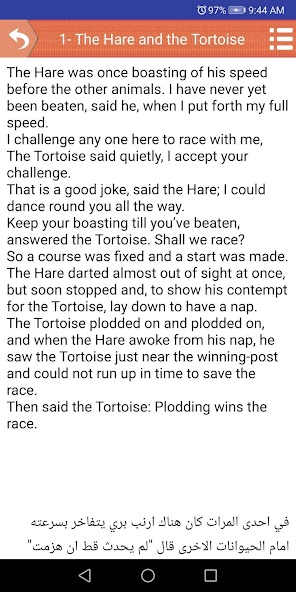 Le programme contient plus de 60 histoires traduites en arabe dans plus d'un niveau de la langue anglaise