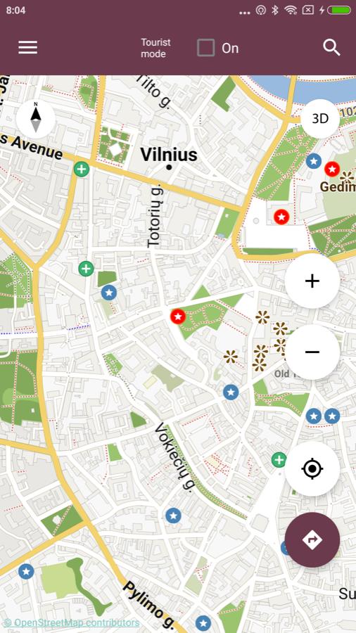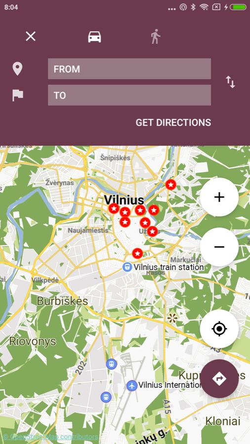Carte hors ligne de Vilnius (Lituanie) - une application de voyage gratuite. Il: cartographier l'itinéraire, montrer des attractions touristiques avec des photos et des descriptions, trouver le café ou le supermarché le plus proche. Connexion Internet non requise.