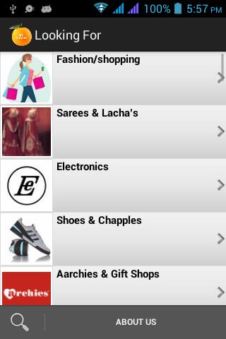 - Vous pouvez rechercher des offres à partir de diverses catégories telles que la mode / shopping, les saris et les lacha, l'électronique, les chaussures et les chapples, les aarchies et les boutiques de cadeaux, les bijoux, les mobiles, le salon de coiffure, les lunettes de soleil, les montres, les sacs, Boutiques, café, voyages, auberge de filles, auberge de garçons, salle d'exposition de vélo, salle d'exposition de voitures, cuisine modulaire, hôpitaux, Tutions, Civil Engg & Architecture, CA, avocat.
